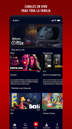 Start your 7-day free trial and begin watching on your favorite screen. At the end of the 7 days, FlixLatino auto-renews at $2.99 per month. FlixLatino premieres movies every Thursday and Sunday, releases series on Saturdays, and animation every Tuesday. Additionally, we offer programmed live channels of different genres for your viewing convenience.
