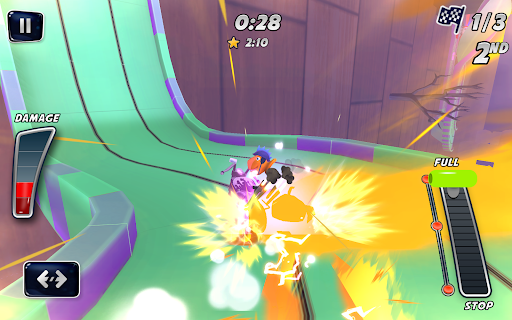 Pick from tons of track piece obstacles and more to build the wildest track you can imagine. When you’re done, build another! Post your track to a gallery filled with tracks from other players and test them all. Earn coins from racing and special rewards to unlock more karts and track pieces.